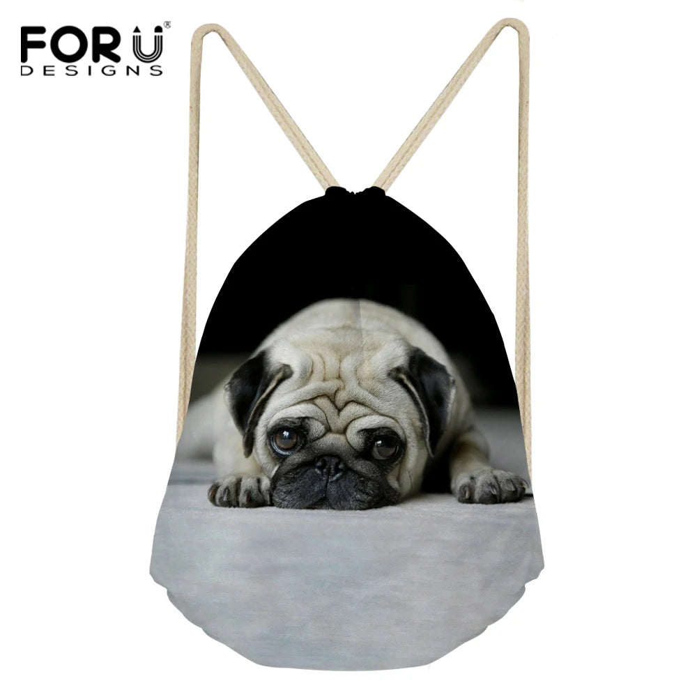 - Drawstring bag with adorable lazy pug dog pattern design