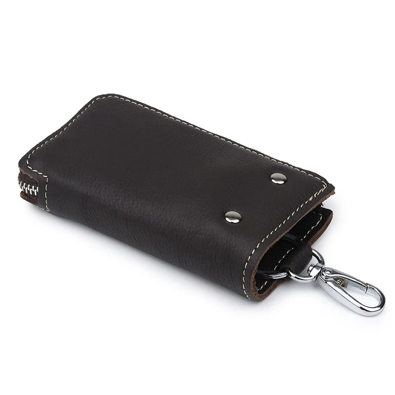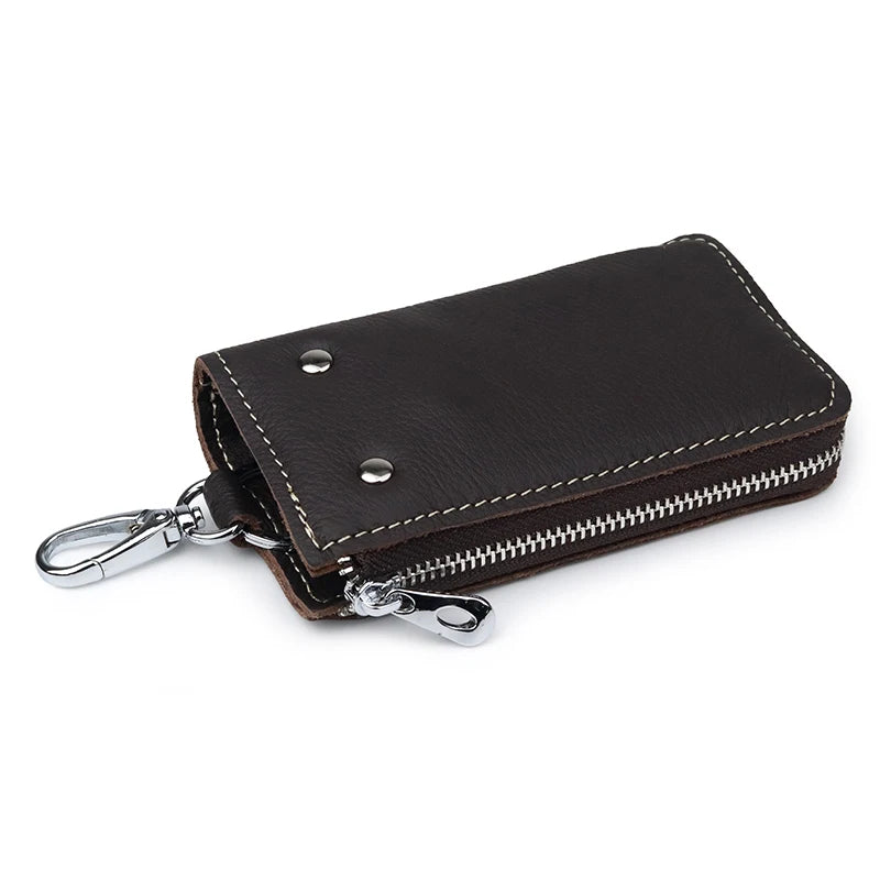 This high-quality leather key wallet is a practical accessory for men that can hold multiple keys securely. It features a zipper closure and a housekeeper design for easy organization of your keys.