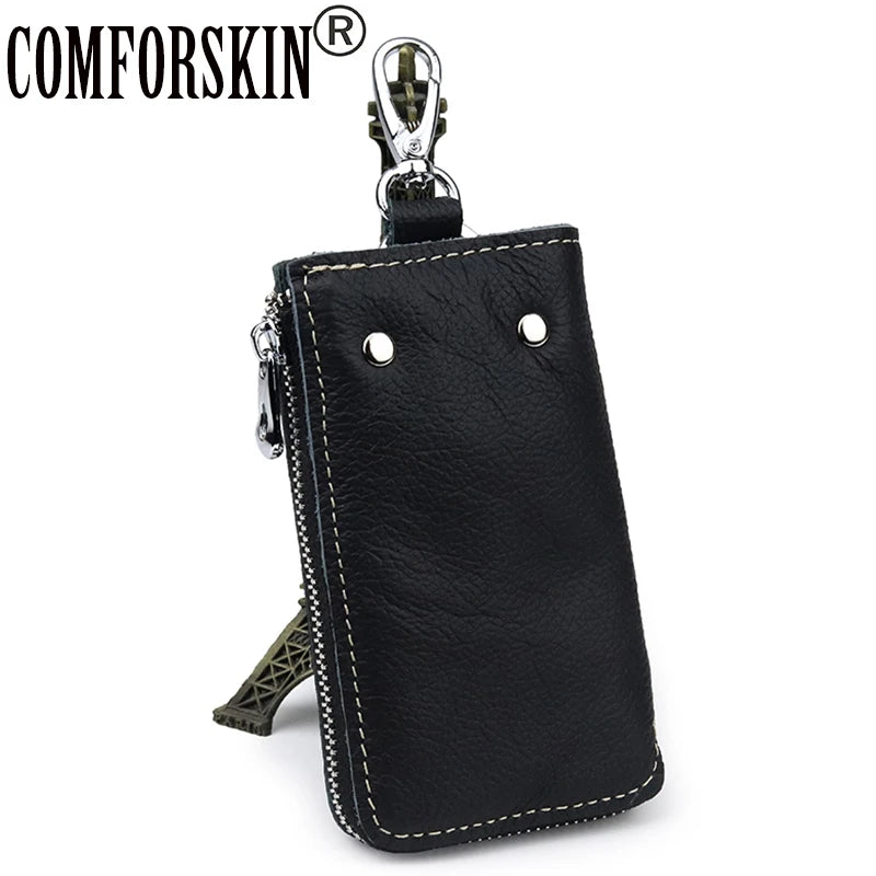 Leather Key Wallet Multi-function Key Chain Zipper Key Case Bag