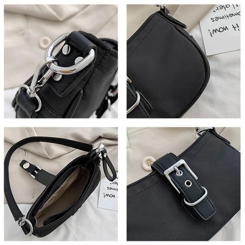This stylish shoulder bag is designed with a belt buckle decoration for women. It is made of high-quality leather, perfect for everyday use.