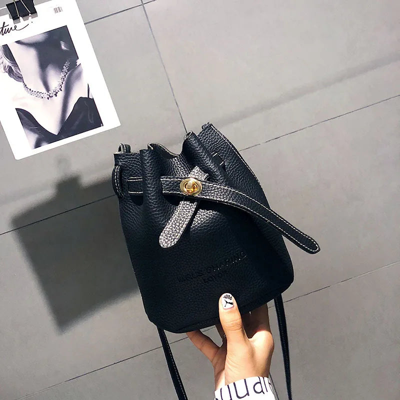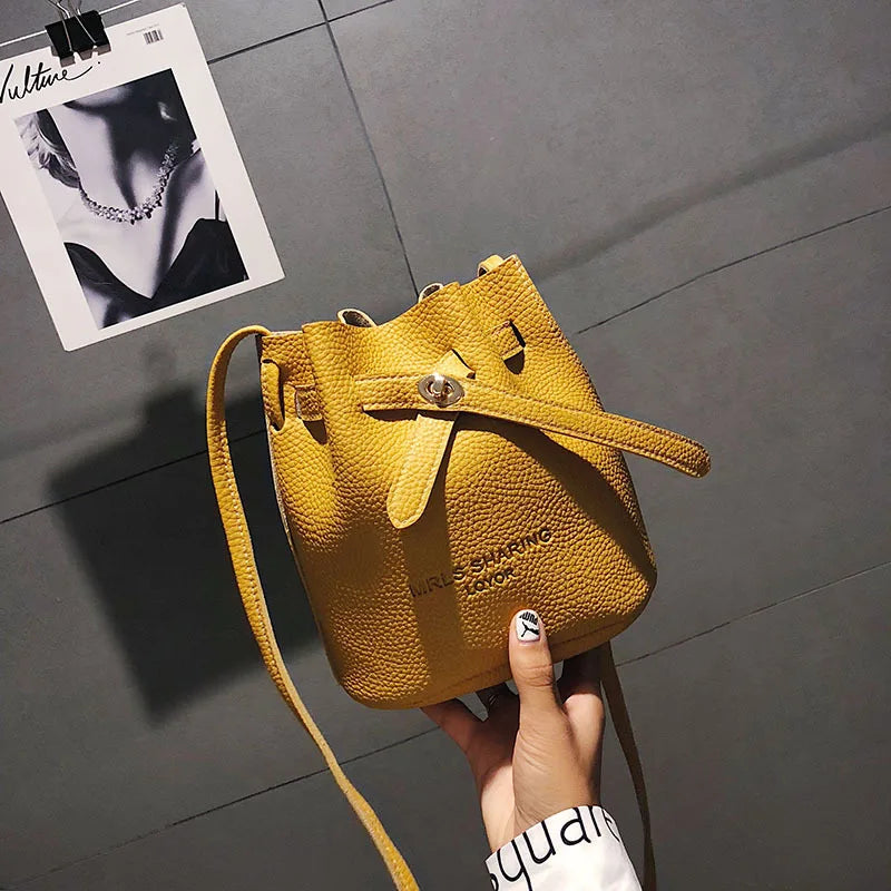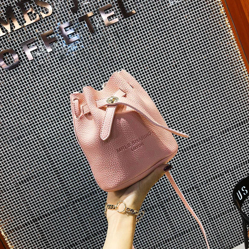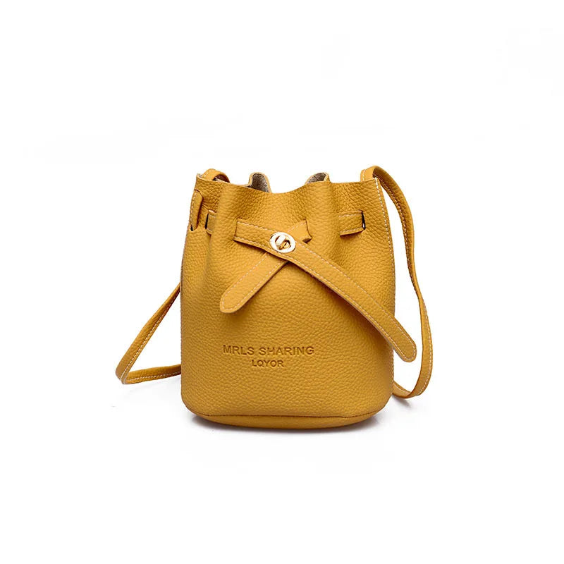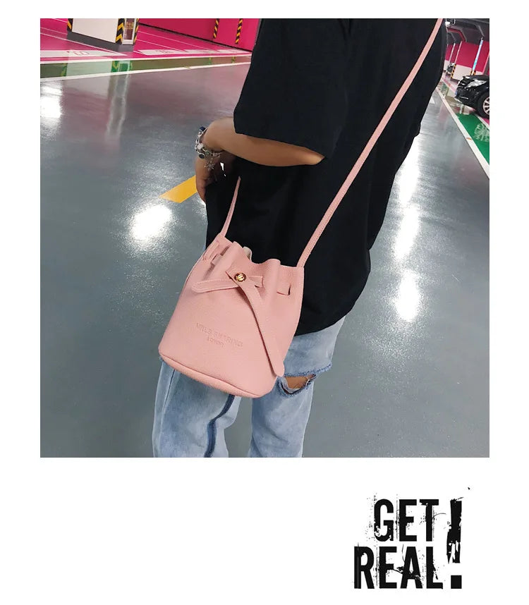 Leather String Handbags Bucket Shoulder Bags Ladies Cross Body Bags