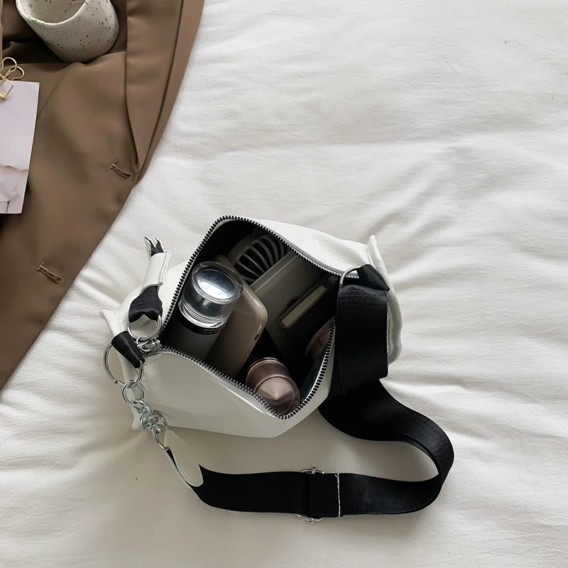 This pillow-shaped leather shoulder bag is perfect for women. It features a chain strap, soft messenger style, and a sleek design. Ideal for everyday use.