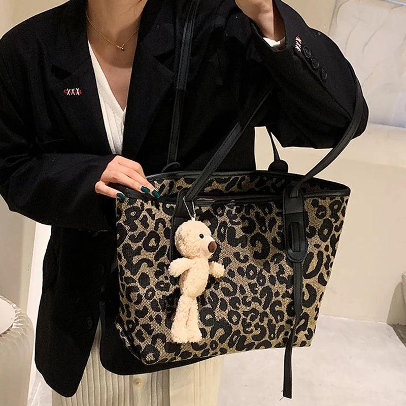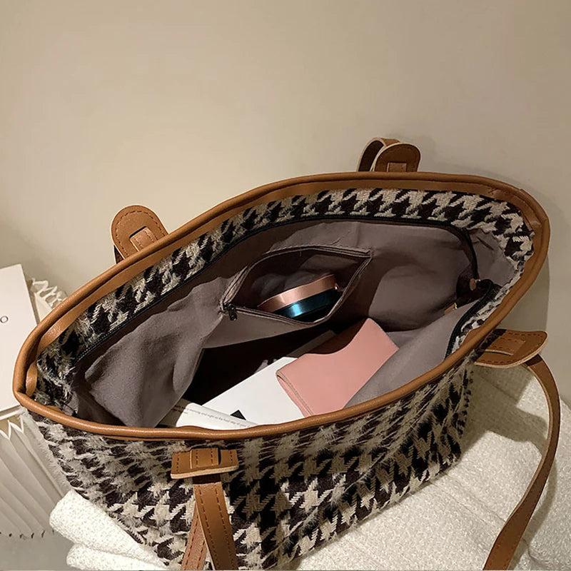 Leopard or Houndstooth Shoulder Bags PU Leather Handbags Tote for Women