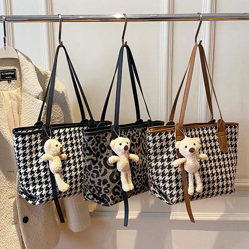 Description:Elevate your style with these retro-inspired shoulder bags featuring a baby bear design. Made from high-quality PU leather, these handbags are perfect for any occasion.Features: Retro leopard or houndstooth design Made from durable PU leather Features a cute baby bear design Spacious interior for all your essentials Perfect accessory for...