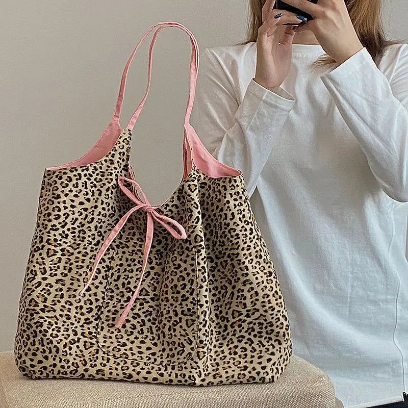 This casual tote handbag is perfect for everyday use with its large capacity. Made of canvas, this retro leopard pattern shoulder bag is ideal for shopping and daily outings.
