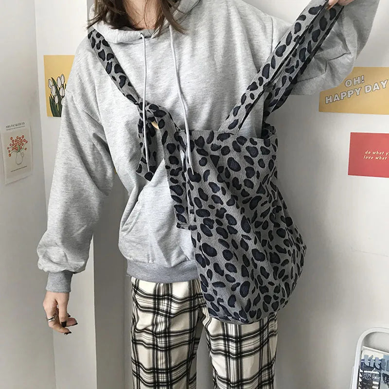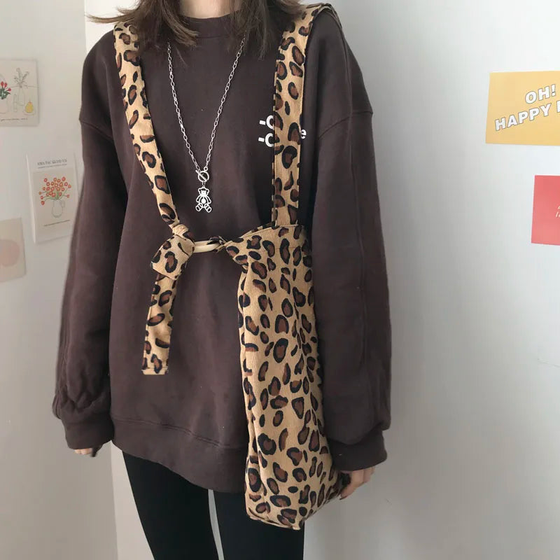 Leopard Print Corduroy Shoulder Bag Large Capacity Totes