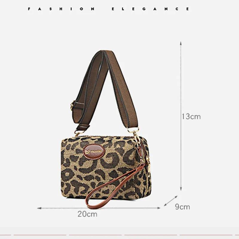 Stay stylish with this vintage leopard print crossbody bag made of durable Oxford material. Carry all your essentials in its spacious compartments.