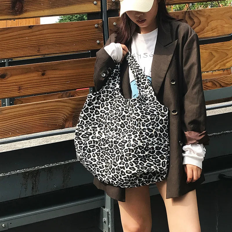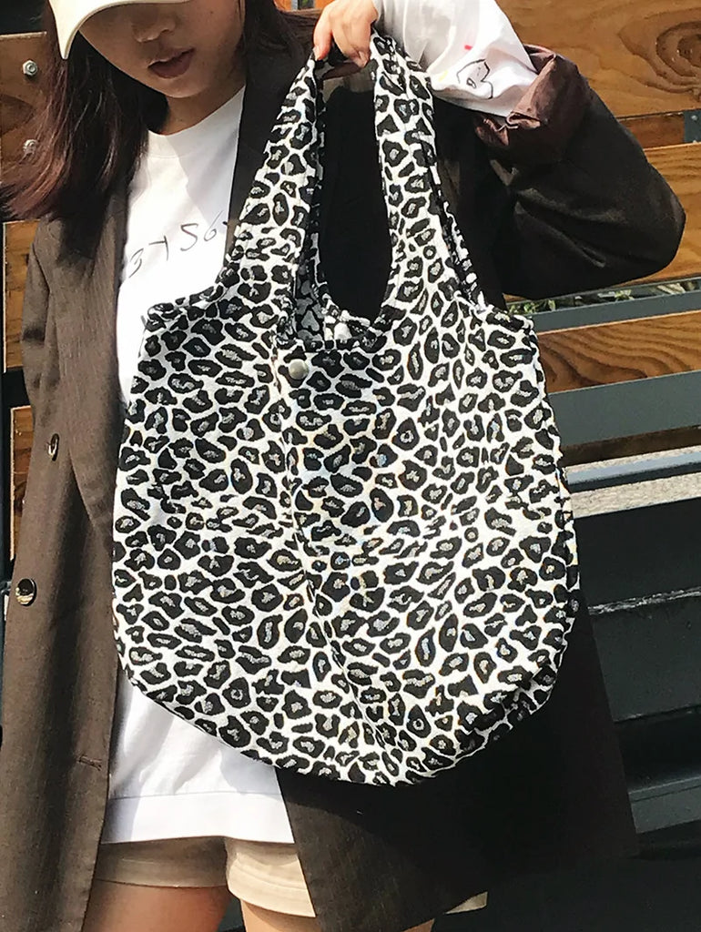 Leopard Print Tote Bag Women Large Capacity Shopping Shoulder Handbag