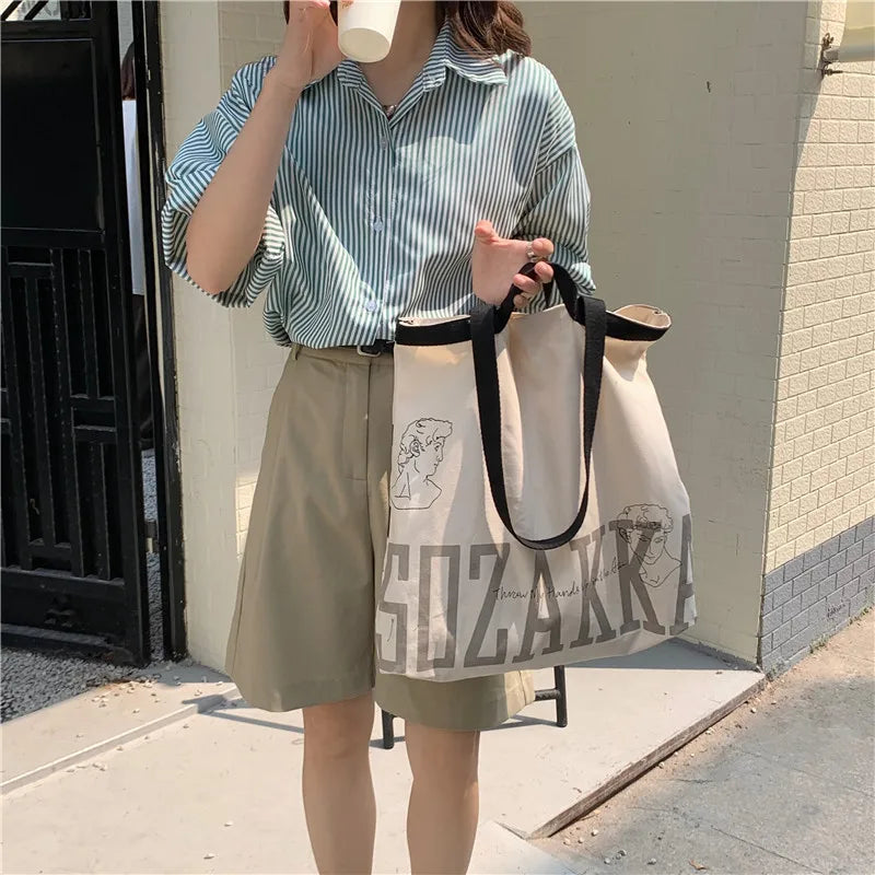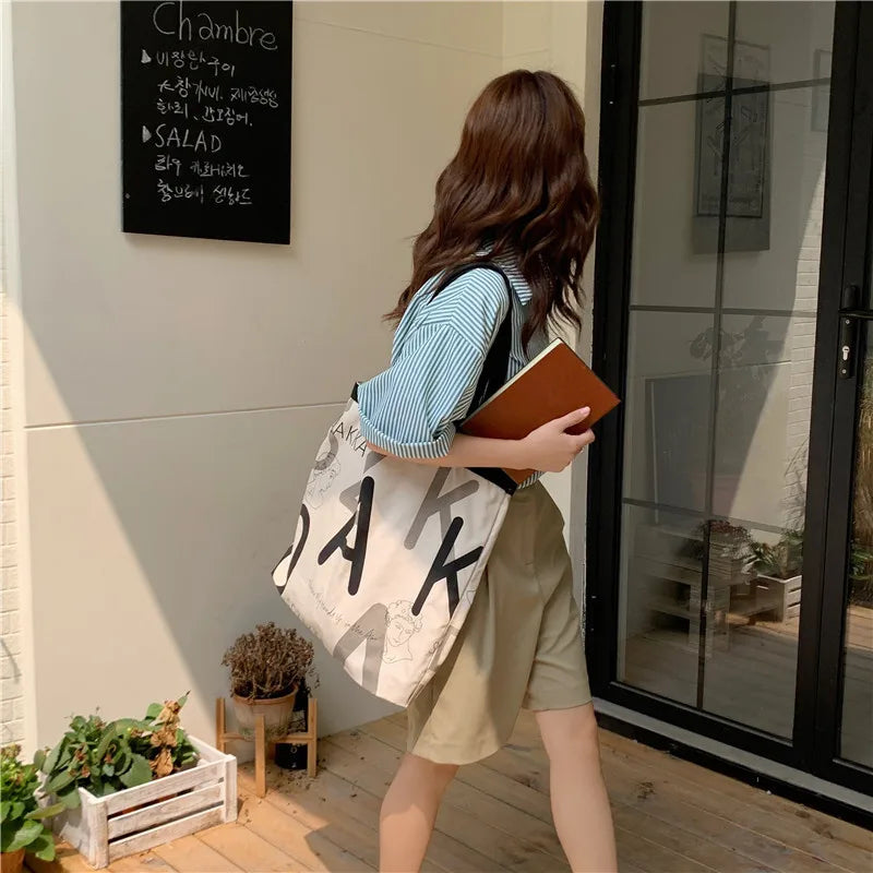 Letter Canvas Women's Shoulder Bag Large Capacity Girls Book Tote Handbags