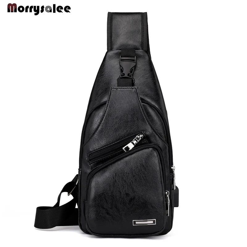 Male Shoulder Bags USB Charging Crossbody Bags Men Leather Chest Bag School