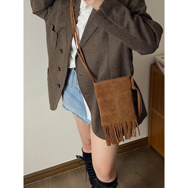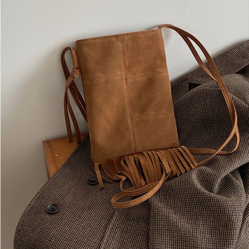 Matte Leather Women's Tassel Shoulder Bag Retro Purse Crossbody Bags