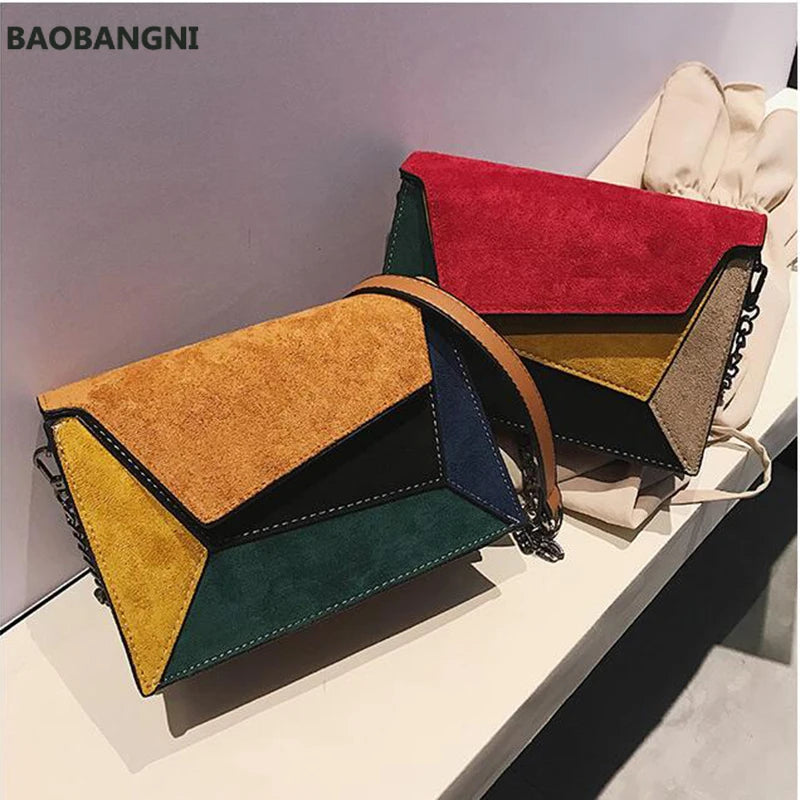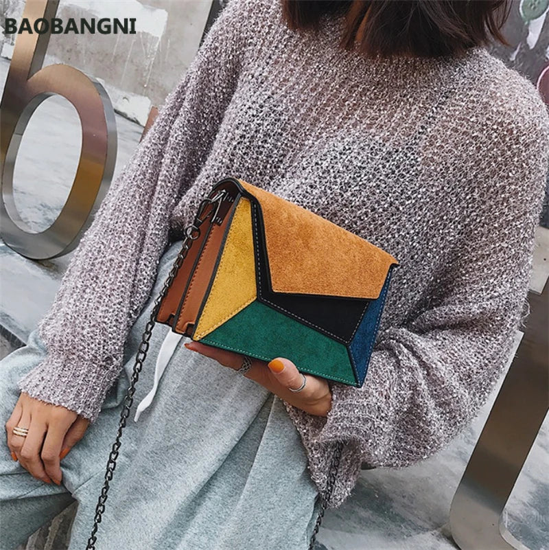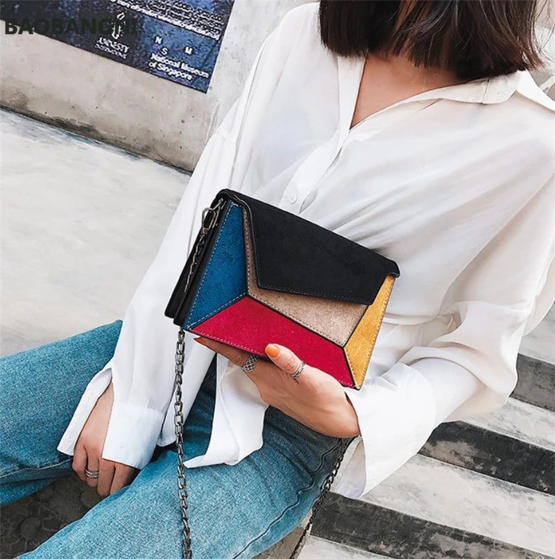 Matte Patchwork Crossbody Bag Women Chain Flap Handbag Small Square Bag