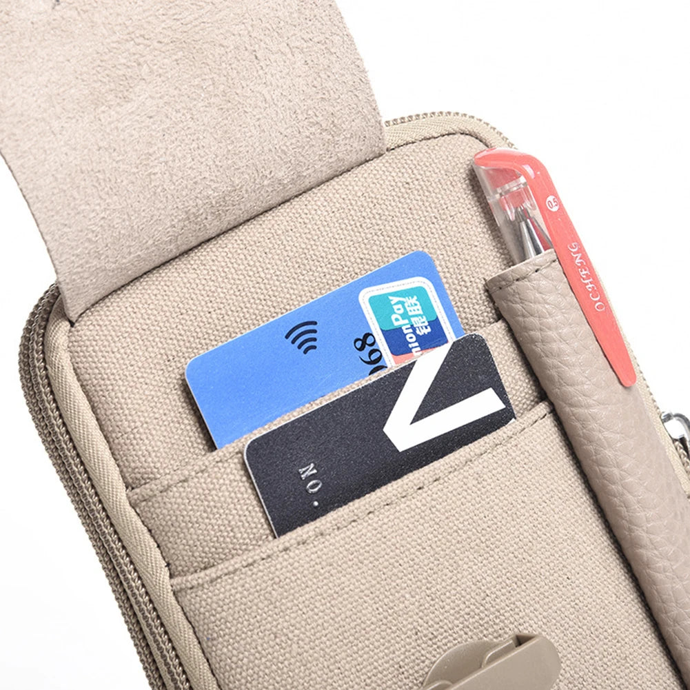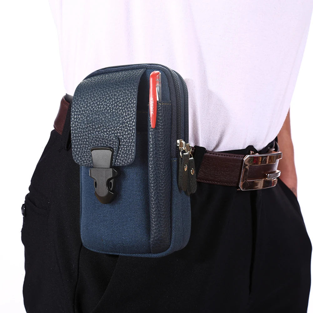 This waist bag is designed for men's outdoor activities, business, and travel. It is made of durable canvas material, suitable for holding phones, wallets, and other essentials.