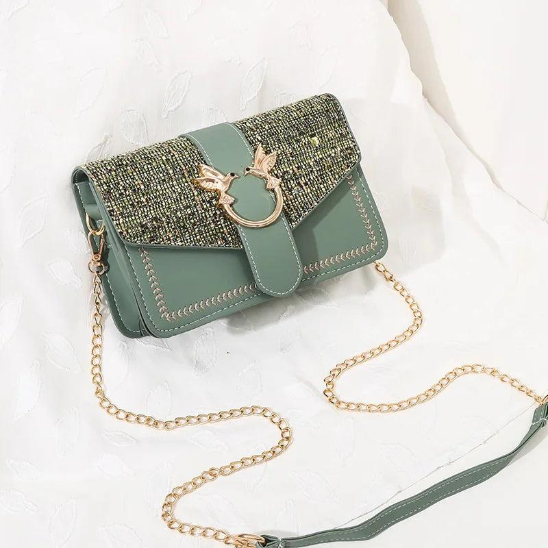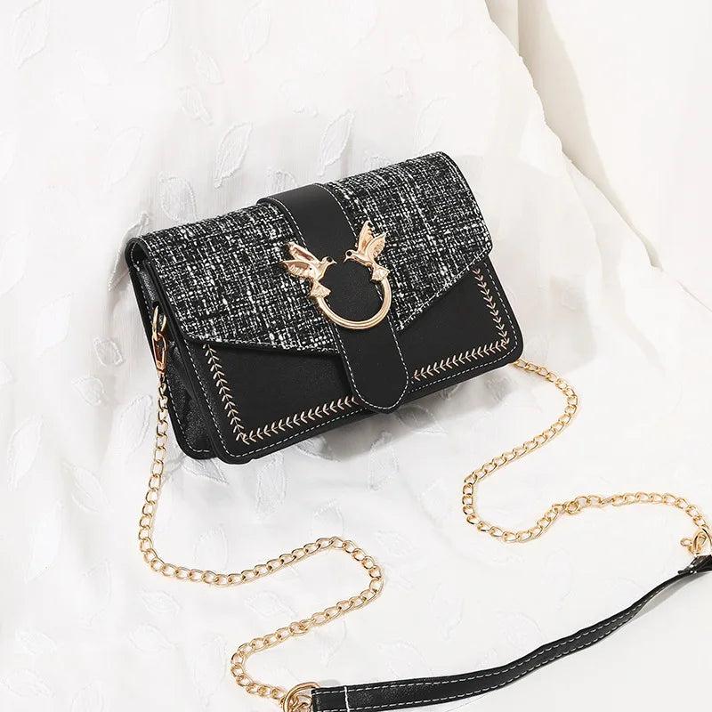 Stay trendy with this mini handbag that features a retro design and wide shoulder strap. Perfect for carrying your essentials in style.