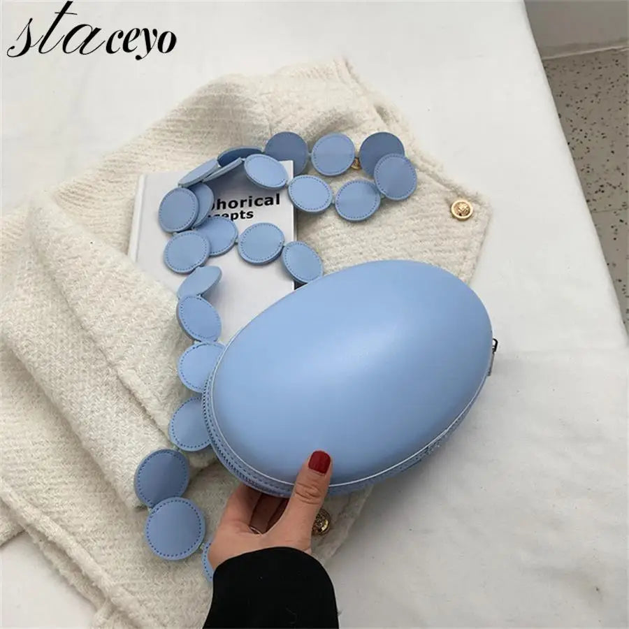 Mini Oval Crossbody Bag For Women PU Leather Messenger Chest Bag Lady Handbag