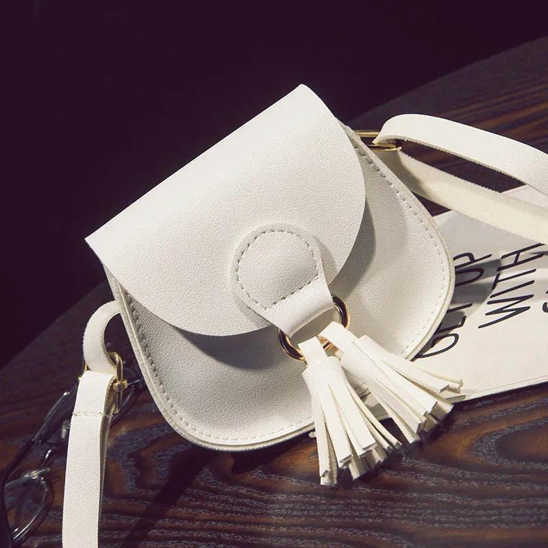 Mini Women Shoulder Bag Ladies' PU Leather Handbag Solid Tassels Decoration