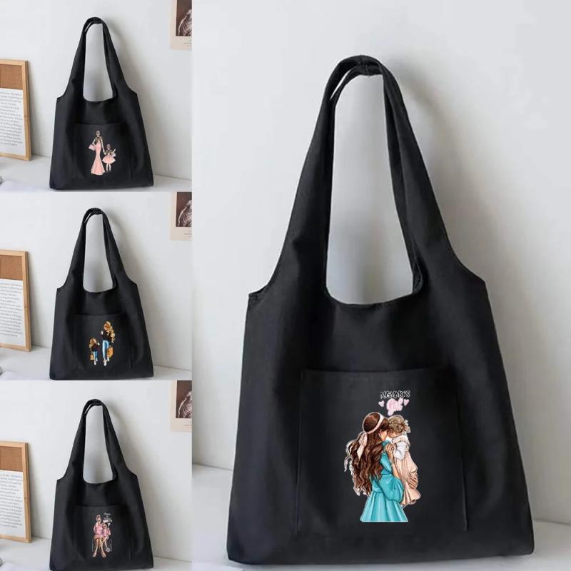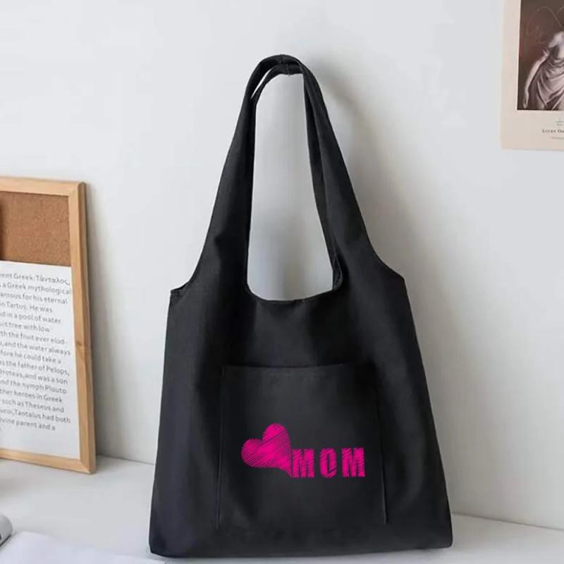 This versatile and eco-friendly canvas tote bag features a stylish Mom pattern design. Ideal for shopping, outings, and daily use.