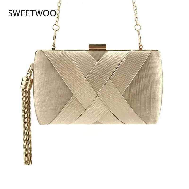 This stylish multi-color silk evening bag is perfect for dinners, parties, weddings, and proms. It features a golden tassel and can be used as a clutch purse.