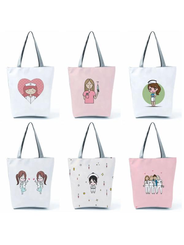Nurse Printed Handbag Women Shoulder Bag Summer Beach Bag