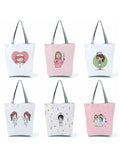 This stylish handbag features a cartoon nurse print, making it a fun accessory for summer outings, beach trips, and daily use. The shoulder bag is perfect for shopping and travel.