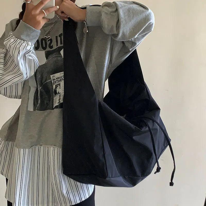 Stay organized and stylish with this versatile nylon bucket shoulder bag purse. Perfect for everyday use with its tote bag design.