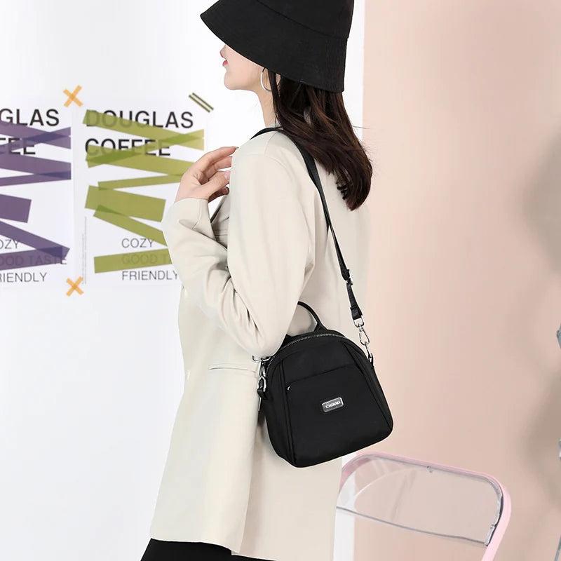 Stay stylish and hands-free with this mini cross-body bag. Made of durable nylon, it's perfect for holding your essentials while on the go.