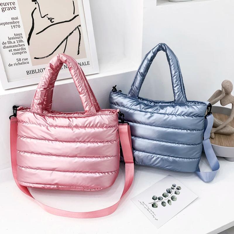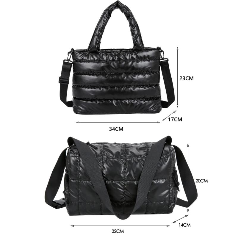 Nylon Padded Handbags Female Large Capacity Top-Handle Bags Solid Crossbody Bag
