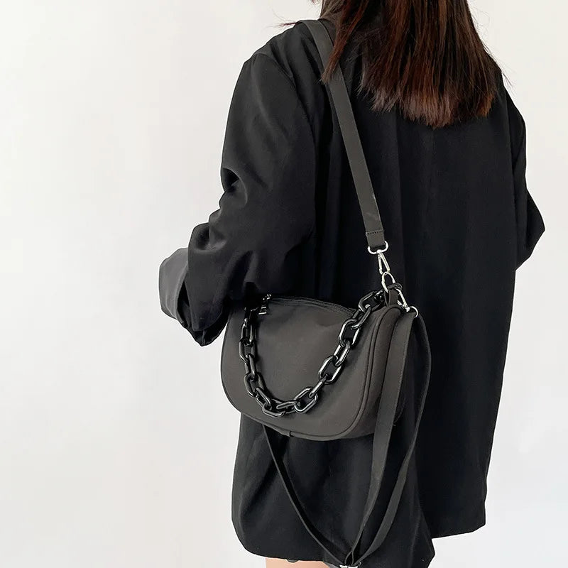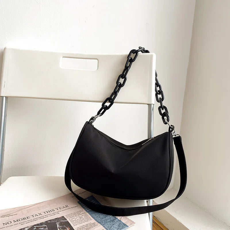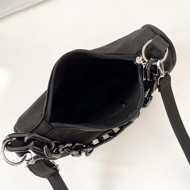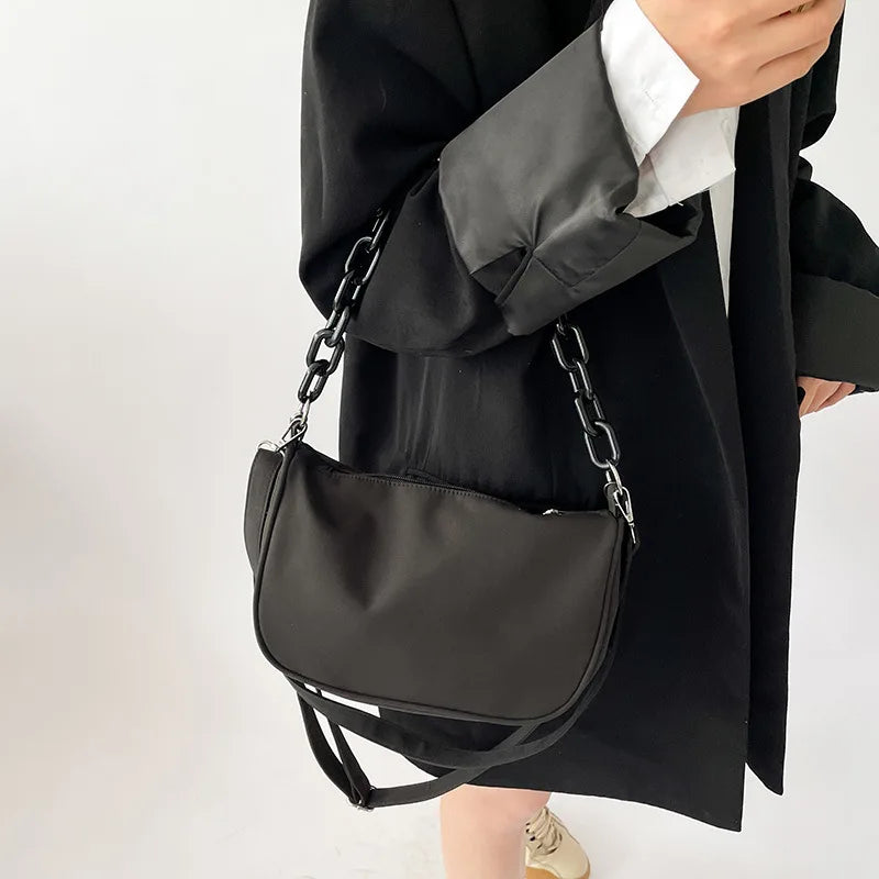 Stay stylish and organized with this versatile nylon shoulder bag. Perfect for daily use, this underarm bag features a trendy chain design and is portable for on-the-go convenience.