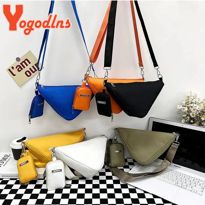 Stay stylish and organized with this solid nylon triangle bag suitable for casual outings, sports, travel, and more. It's a versatile handbag and purse for daily use.