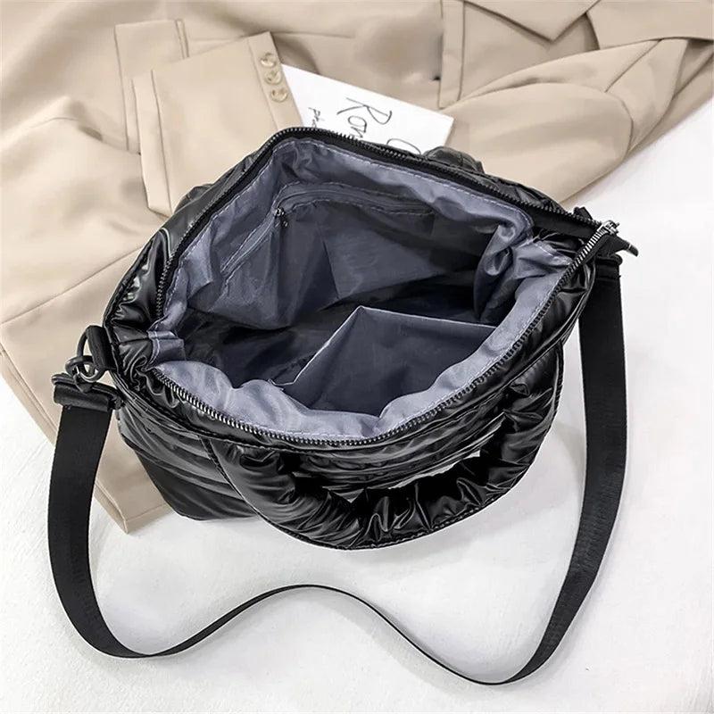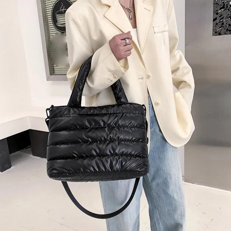 Stay stylish and organized with this down padded shoulder bag designed for women. It offers a spacious interior, perfect for travel and everyday use.