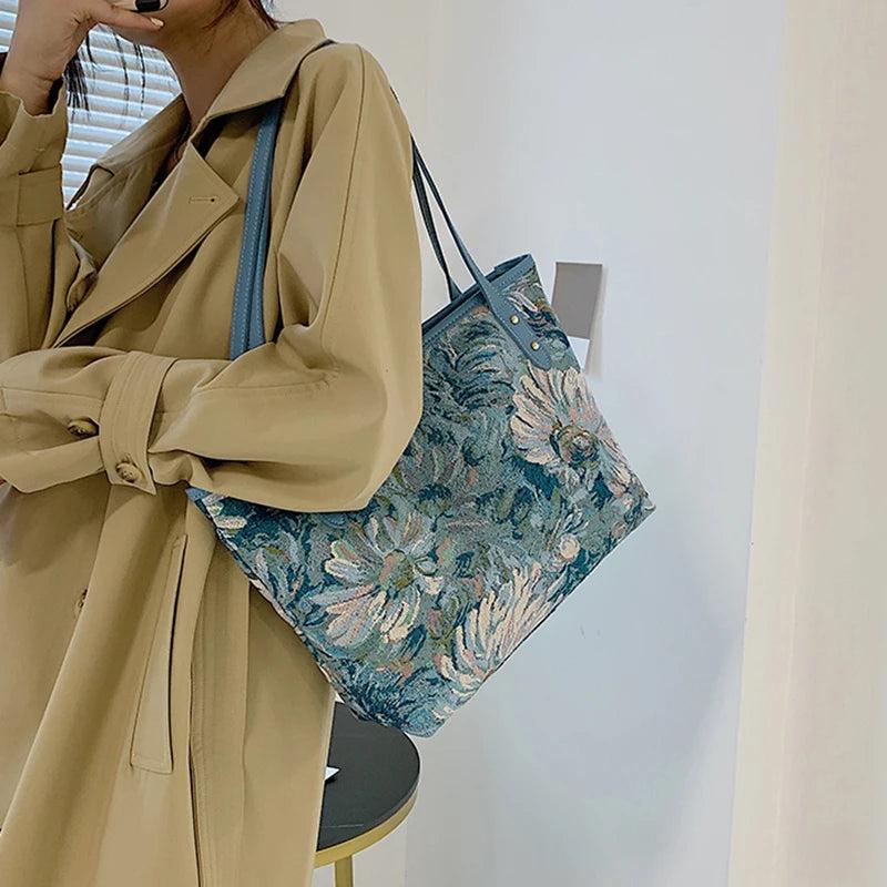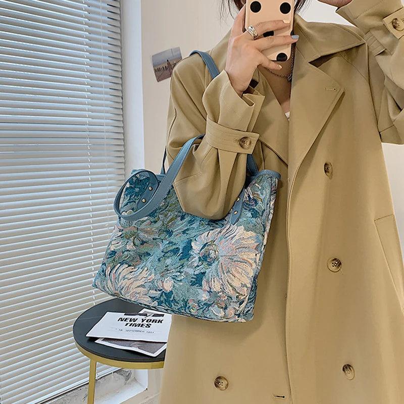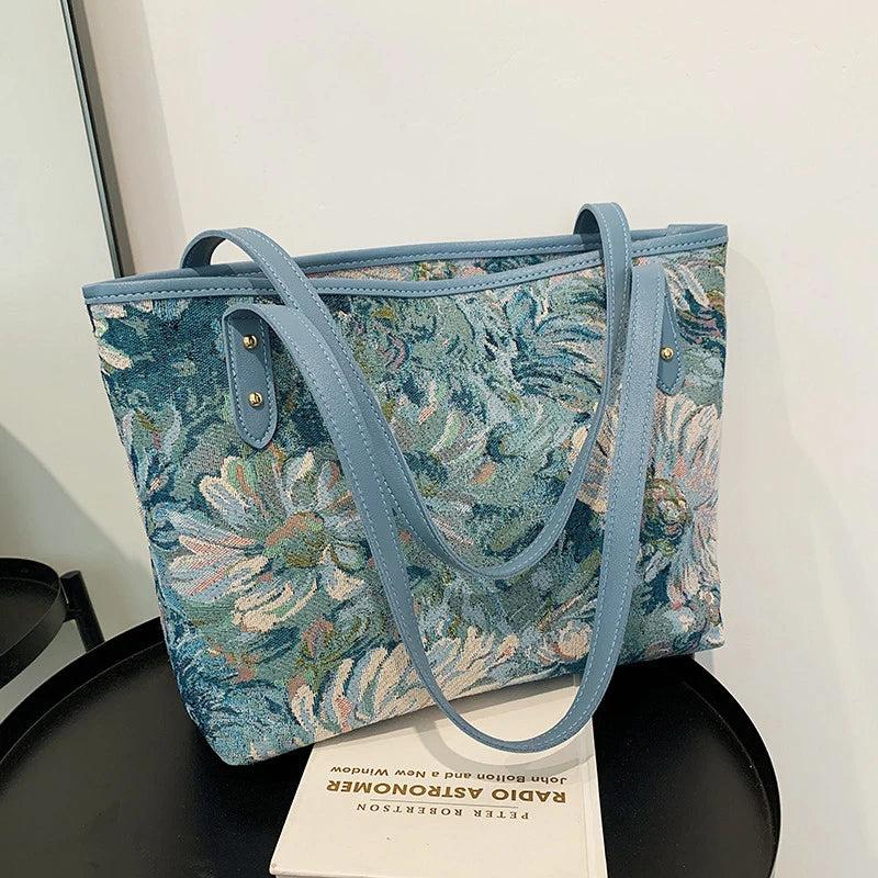 Oil Painting Canvas Tote Bag Retro Art Large Capacity Travel Bags Women