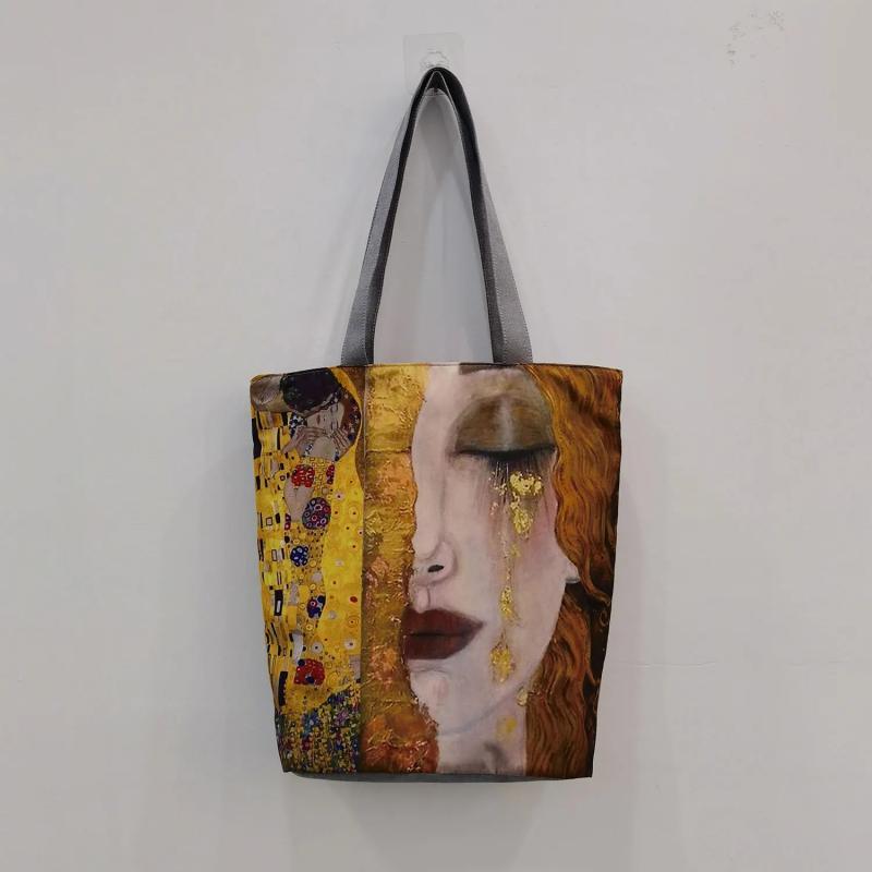 Oil Painting Tears Cloth Tote For Women Gustav Klimt Handbag