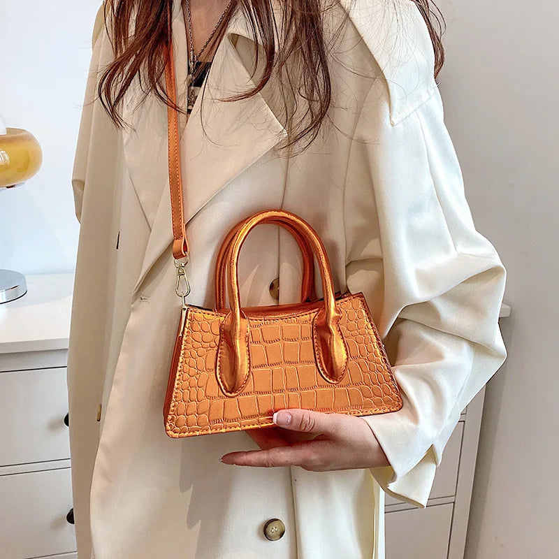 Orange Crocodile Pattern Leather Handbag Clutch Shoulder Bag