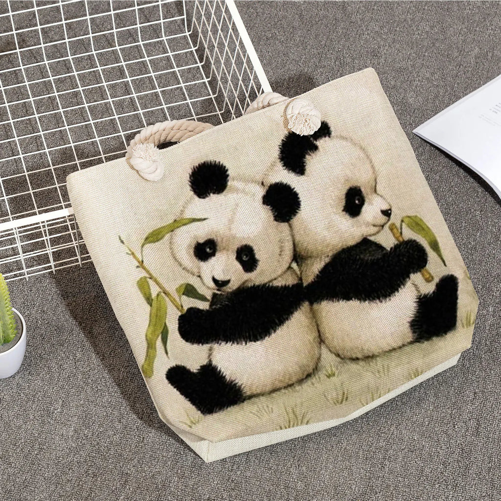 Panda Printed Handbags Ladies Linen Animal Shopper Bag