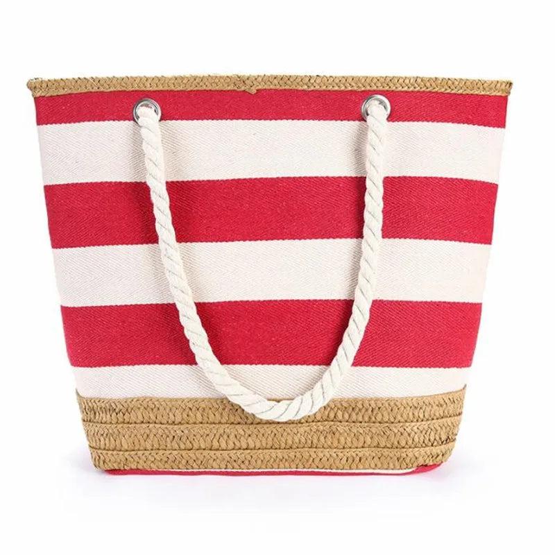 This stylish beach bag is perfect for your summer holiday travels. Made of high-quality striped straw and canvas, this handbag is spacious and durable.