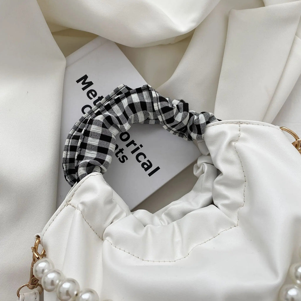 Pearls Shoulder Bags Women Temperament PU Leather Pleated Cloud Bag