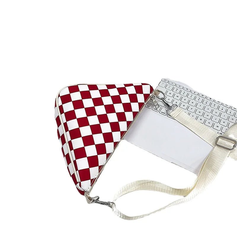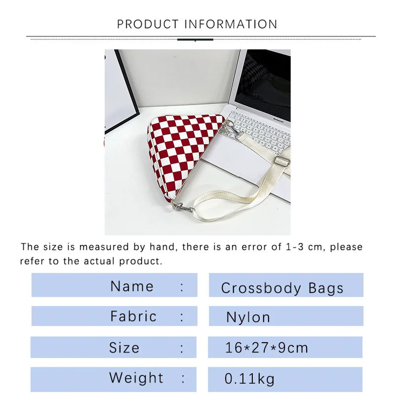 Description:This unique handbag is perfect for women who love sports. Made of nylon, it is durable and comfortable to carry. The plaid design adds a stylish touch to your outfit.Features: Plaid crossbody bag for women Ideal for sports and daily use Made of durable nylon material Unique triangle satchel design...