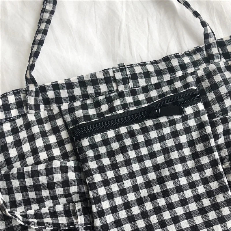 Plaid Eco Canvas Tote Shoulder Bag Large Capacity Ladies Purse Handbags