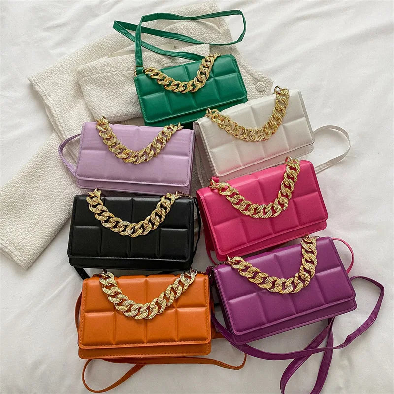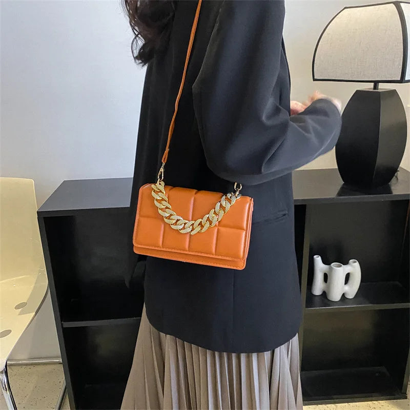 Elevate your style with this chic plaid quilted shoulder bag featuring a chain crossbody design and flap closure.