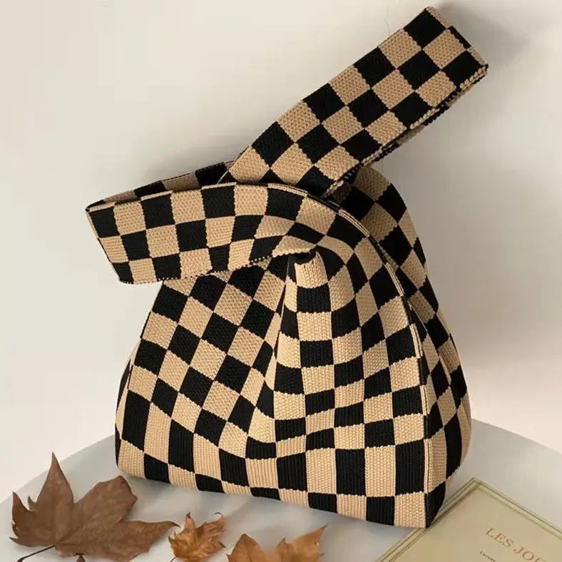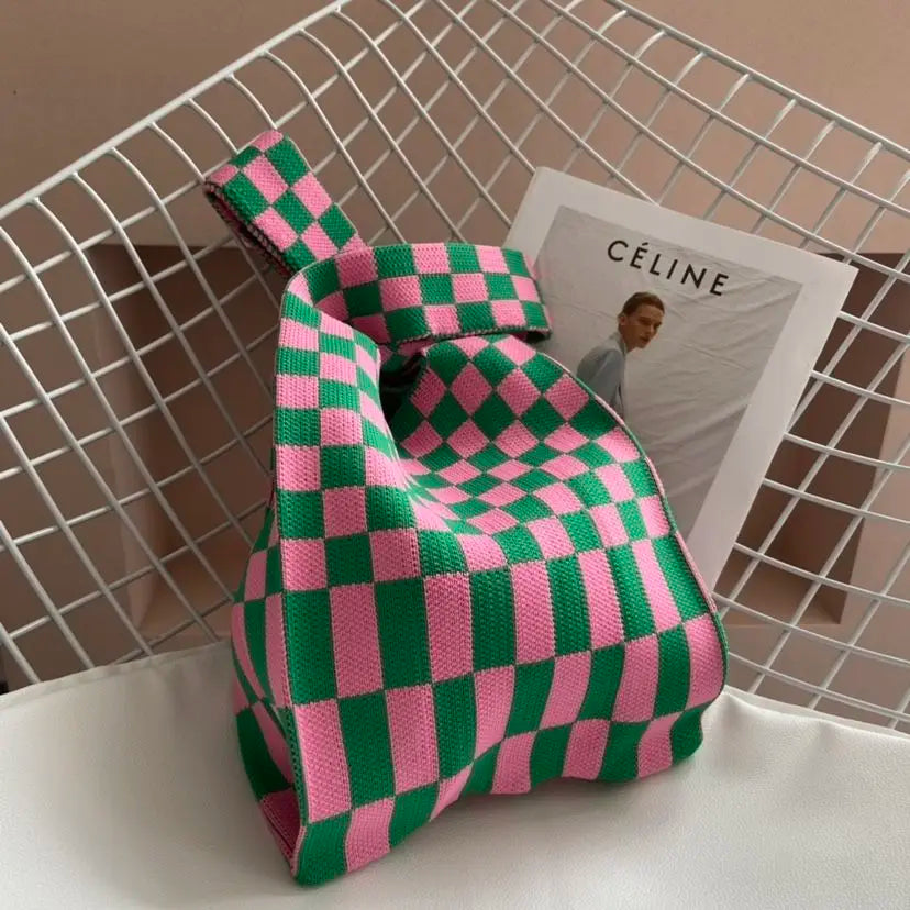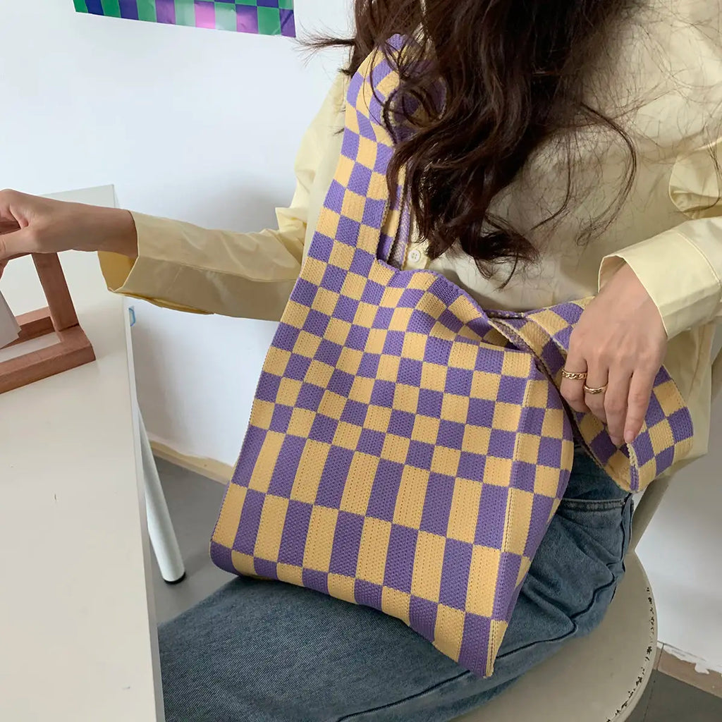 This square plaid shopping bag is perfect for women and girls. It features a high-capacity design and a contrast color pattern, making it a stylish and practical accessory for everyday use.