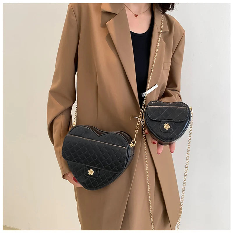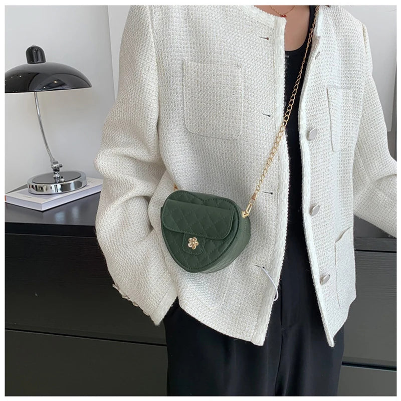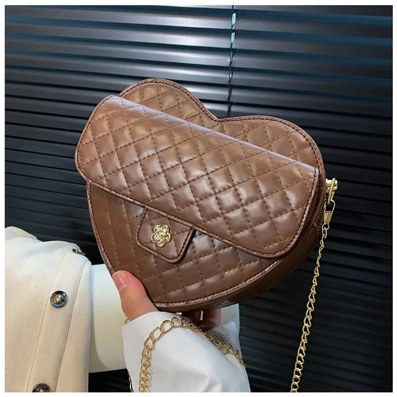 Plaid Shoulder Bag Heart Shape PU Leather Handbags Small Crossbody Clutch