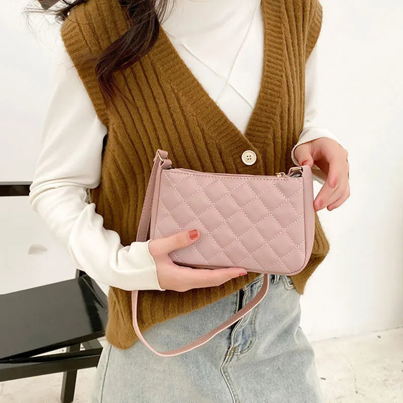 This small armpit bag is made of solid PU leather, perfect for daily use. It features a trendy plaid design.