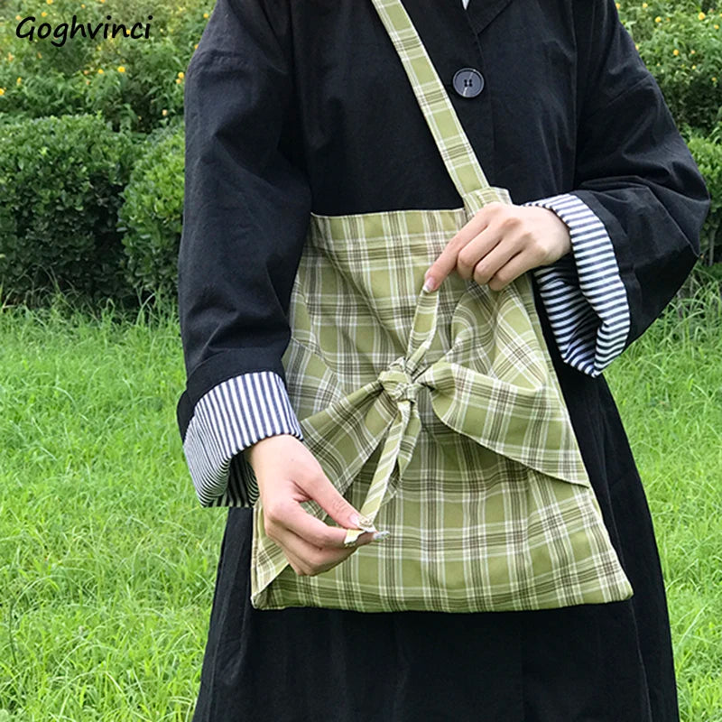 This plaid shoulder bag is perfect for students with its preppy, retro style. It features a sweet bow design and all-match canvas pouch.