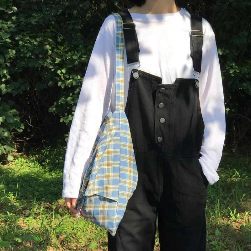 - Plaid vintage shoulder bag for students