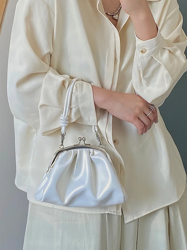Elegant and stylish pleated clutch purse perfect for ladies. Features a chain shoulder strap. Ideal for carrying essentials in style.