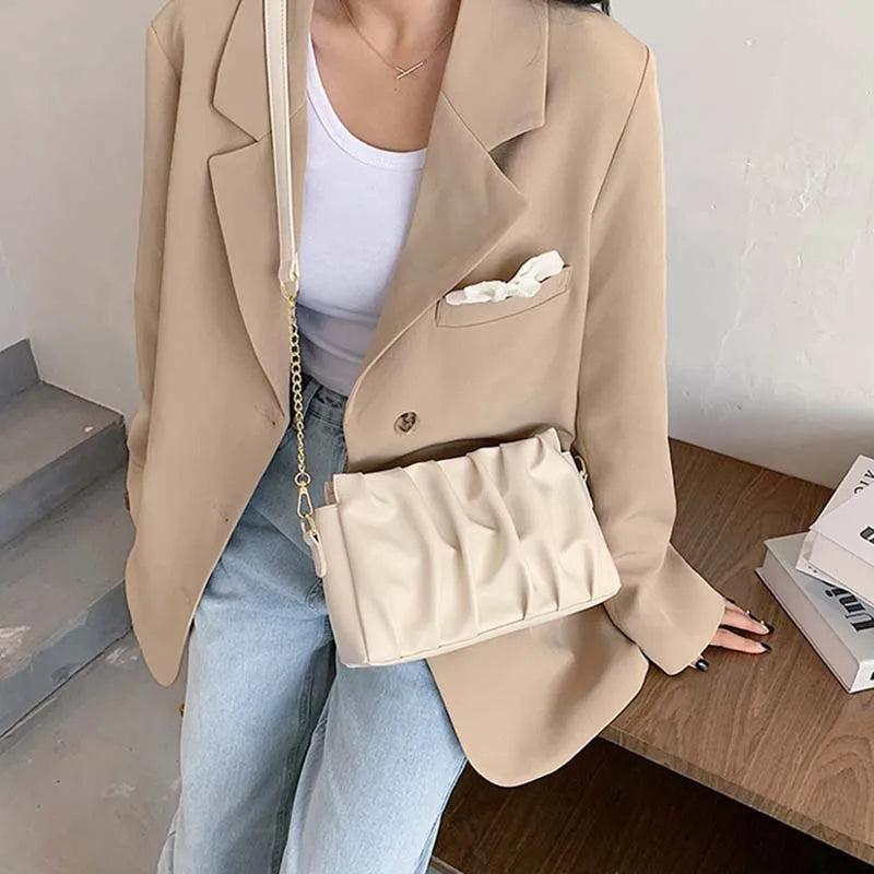 Pleated Ruched Shoulder Bag Chain Cross Body Flap Bag