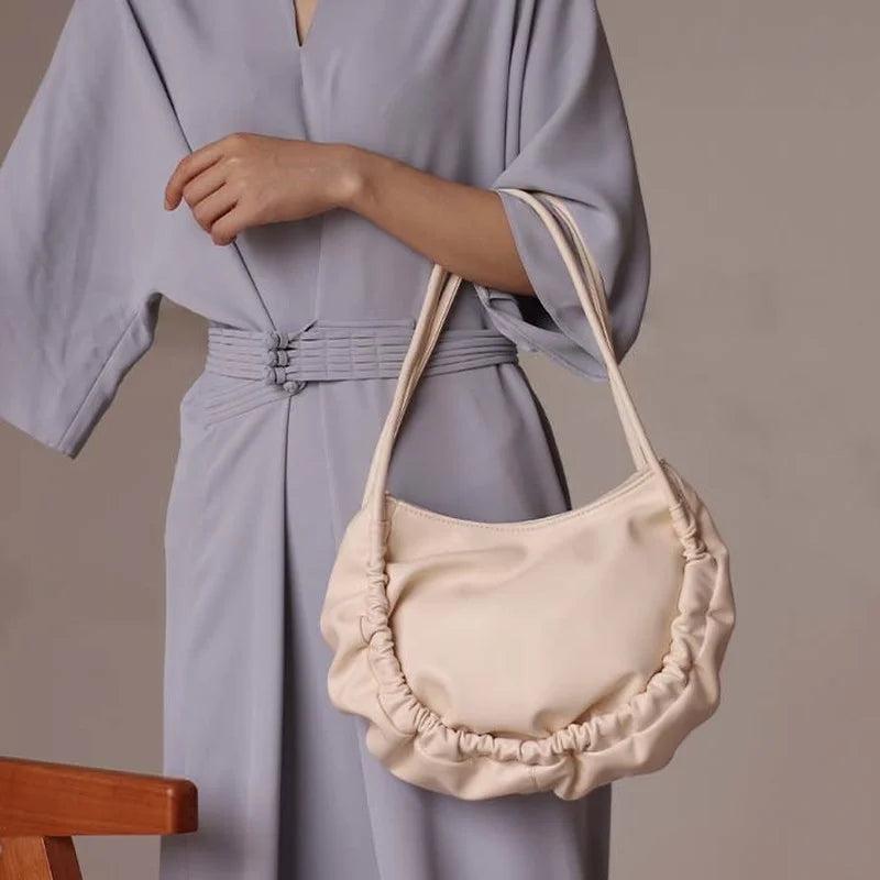 This stylish shoulder bag is perfect for office ladies with its pleated design and large capacity. Carry all your essentials in style!
