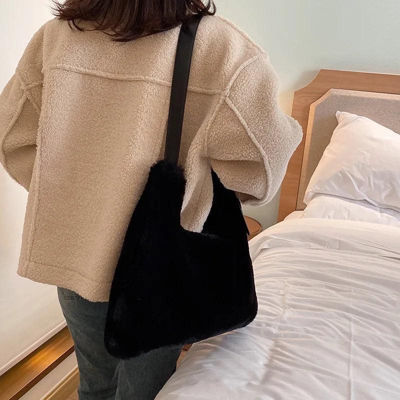 Stay cozy and stylish with this large-capacity plush messenger bag, perfect for autumn and winter. Its one-shoulder design adds a touch of Western wild to your outfit.