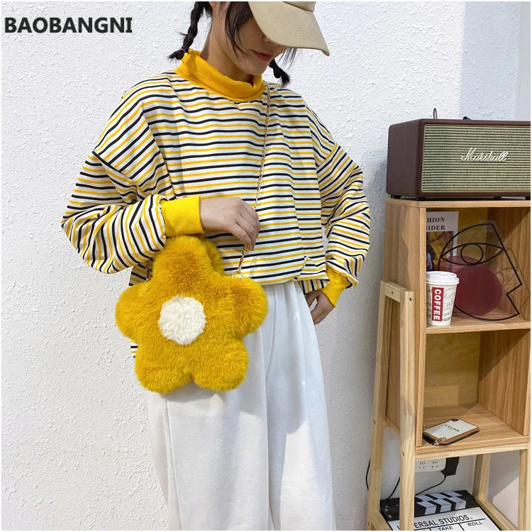Plush Flower Crossbody Bag Chain Shoulder Bag Faux Fur Handbags