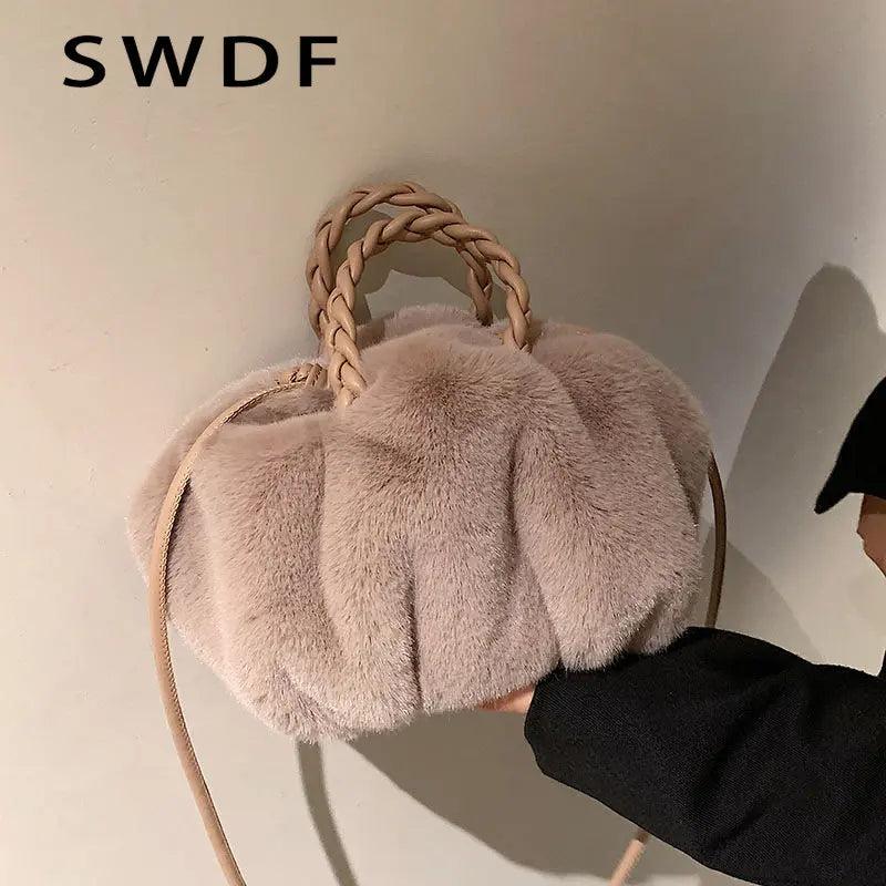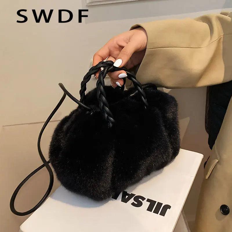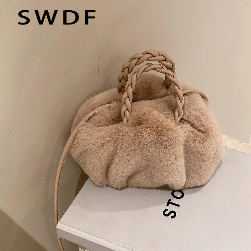 Plush Tote Shoulder Bag for Women - Fluffy Handbag Fur Ladies Shoppers Bag